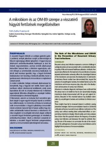 Tóth, Zsófai Fruzsina (2026) A mikrobiom és az OM-89 szerepe a visszatérő húgyúti fertőzések megelőzésében = The Role of the Microbiome and OM-89 in the Prevention of Recurrent Urinary Tract Infections. MAGYAR UROLÓGIA, 38 (1). pp. 28-30. ISSN 0864-8921