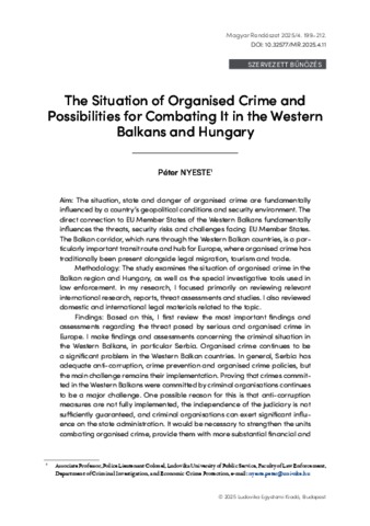 Nyeste, Péter (2025) The Situation of Organised Crime and Possibilities for Combating It in the Western Balkans and Hungary. MAGYAR RENDÉSZET, 25 (4). pp. 199-212. ISSN 1586-2895
