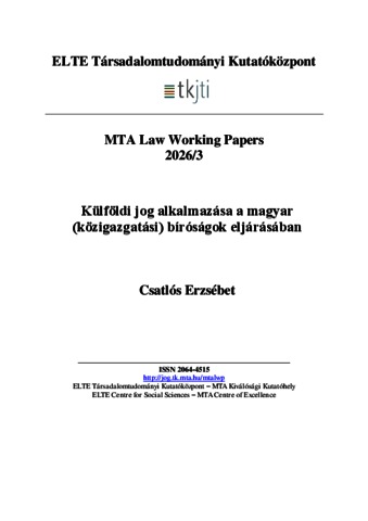 Csatlós, Erzsébet (2026) Külföldi jog alkalmazása a magyar (közigazgatási) bíróságok eljárásában. MTA LAW WORKING PAPERS, 2026 (3). pp. 1-24. ISSN 2064-4515