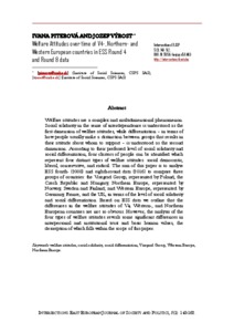 Welfare attitudes are a complex and multidimensional phenomenon. Social solidarity in the sense of interdependence is understood as the first dimension of welfare attitudes, while differentiation – in terms of how people usually make a distinction between groups that results in their attitude about whom to support – is understood as the second dimension. According to their preferred level of social solidarity and social differentiation, four clusters of people can be identified which represent four distinct types of welfare attitudes: social democratic, liberal, conservative, and radical. The aim of this paper is to analyse ESS fourth- (2008) and eighth-round data (2016) to compare three groups of countries: the Visegrad Group, represented by Poland, the Czech Republic and Hungary; Northern Europe, represented by Norway, Sweden and Finland; and Western Europe, represented by Germany, France, and the UK, in terms of the level of social solidarity and social differentiation. Based on ESS data we outline that the differences in the welfare attitudes of V4, Western-, and Northern European countries are not so obvious. However, the analysis of the four types of welfare attitudes reveals some significant differences in interpersonal and institutional trust and basic human values, the description of which falls within the scope of this paper