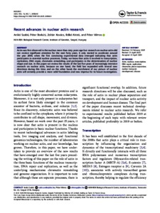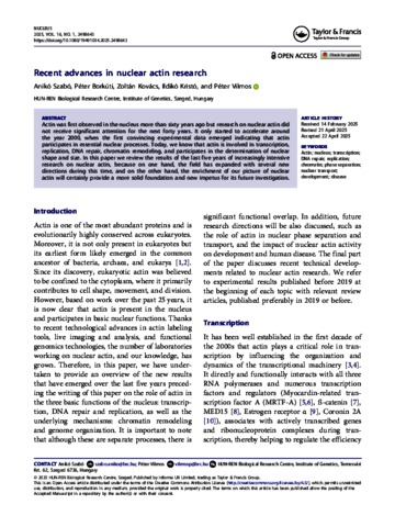 Szabó, Anikó and Borkúti, Péter and Kovács, Zoltán and Kristó, Ildikó and Vilmos, Péter (2025) Recent advances in nuclear actin research. NUCLEUS, 16 (1). No. 2498643. ISSN 1949-1034