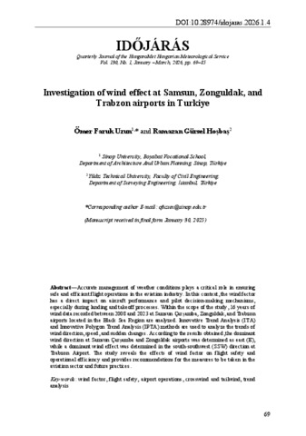 Uzun, Ömer Faruk and Hoșbaș, Ramazan Gürsel (2026) Investigation of wind effect at Samsun, Zonguldak, and Trabzon airports in Turkiye. IDŐJÁRÁS / QUARTERLY JOURNAL OF THE HUNGARIAN METEOROLOGICAL SERVICE, 130 (1). pp. 69-85. ISSN 0324-6329
