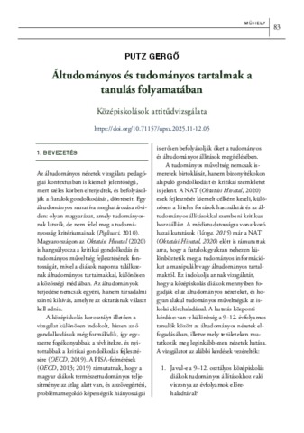 Putz, Gergő (2025) Áltudományos és tudományos tartalmak a tanulás folyamatában : Középiskolások attitűdvizsgálata. ÚJ PEDAGÓGIAI SZEMLE, 75 (11-12). pp. 83-98. ISSN 1215-1807