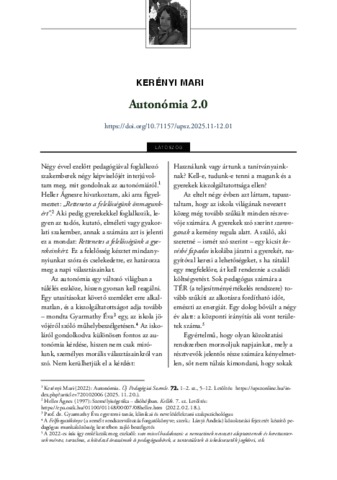 Kerényi, Mari (2025) Autonómia 2.0. ÚJ PEDAGÓGIAI SZEMLE, 75 (11-12). pp. 5-12. ISSN 1215-1807