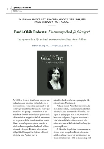 Pardi-Oláh, Roberta (2025) Kisasszonyokból Jó feleségek? : Leánynevelés a 19. századi transzcendentalista Amerikában. ÚJ PEDAGÓGIAI SZEMLE, 75 (5-6). pp. 112-119. ISSN 1215-1807