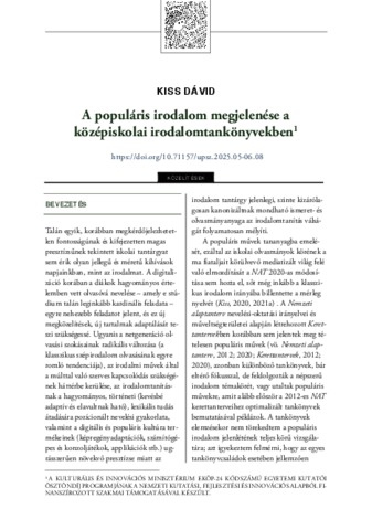 Kiss, Dávid (2025) A populáris irodalom megjelenése a középiskolai irodalomtankönyvekben. ÚJ PEDAGÓGIAI SZEMLE, 75 (5-6). pp. 97-107. ISSN 1215-1807