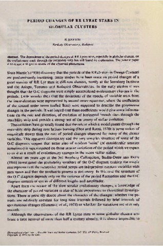 Szeidl, Béla (1975) Period Changes of RR Lyrae Stars in Globular Clusters. In: Variable Stars and Stellar Evolution, Proceedings of IAU Symp. No. 67. Reidel, Dordrecht, pp. 545-552.