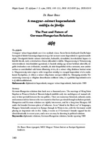 A magyar–német kapcsolatok ezer évre nyúlnak vissza. Szent István királyunk Gizella bajor hercegnővel kötött házassága alapozta meg a két nemzet szoros kapcsolatát és egymásrautaltságát. Országaink között számos történelmi, kulturális, társadalmi, kereskedelmi kapocs és kötelék létezik, mely a történelem viharos időszakát is túlélte. Magyarország és Németország szövetrendszere összefonódott egymással, és hazánk sokáig egy német befolyás alatt álló, tágabb értelemben vett civilizációs, mentális, de akár közpolitikai térhez tartozott, nem utolsó- sorban az osztrákokkal való közös államiság révén, de a német világ általános hatásai miatt is. Magyarország mint sziget a szláv tengerben mindig is a nyugati kapcsolatai révén csatlakozott Európához, és ebben a német világ fontos szerepet töltött be. Manapság mintha Németország vonzereje a világban drasztikusan csökkent volna, és a politikai kapcsolatok terén is új idők kezdődnének.German-Hungarian relations date back over a thousand years. The marriage of King Saint Stephen to Princess Gisela of Bavaria helped establish early ties and degrees of mutual reliance in later periods between the two polities. There are numerous historical, cultural, social, and commercial ties between the two countries that have persisted through turbulent periods. Hungarian and German relations are tightly interwoven, and for a long time Hungary fell under the broader German sphere of influence. As an “island in the Slavic sea” of languages, Hungary historically connects to Europe through its Western ties, with the Germanic world playing an important role in this. Today, it seems as if Germany’s broader appeal has declined drastically in recent years, and a new era may be dawning in political relations.