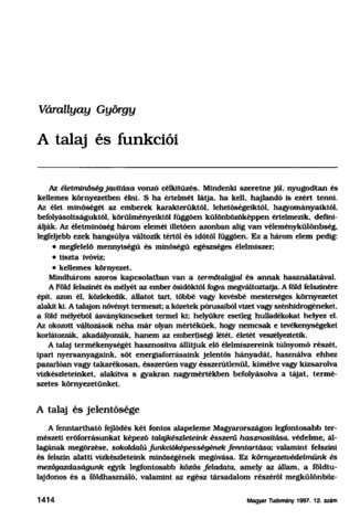 Várallyay, György (1997) A talaj és funkciói. MAGYAR TUDOMÁNY, 42(104 (12). pp. 1414-1430. ISSN 0025-0325