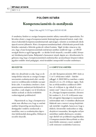 Polónyi, István (2025) Kompetenciamérés és osztályozás. ÚJ PEDAGÓGIAI SZEMLE, 75 (1-2). pp. 62-74. ISSN 1215-1807