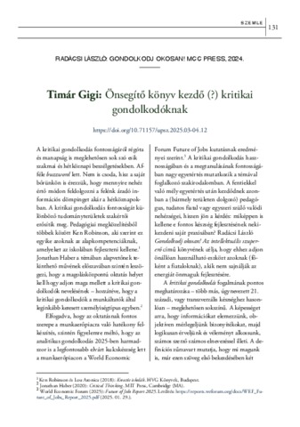 Timár, Gigi (2025) Önsegítő könyv kezdő (?) kritikai gondolkodóknak. ÚJ PEDAGÓGIAI SZEMLE, 75 (3-4). pp. 131-133. ISSN 1215-1807