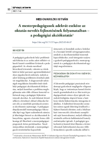 Medovarszki, István (2025) A mesterpedagógusok adekvát eszköze az oktatás-nevelés fejlesztésének folyamataiban – a pedagógiai akciókutatás. ÚJ PEDAGÓGIAI SZEMLE, 75 (5-6). pp. 80-96. ISSN 1215-1807