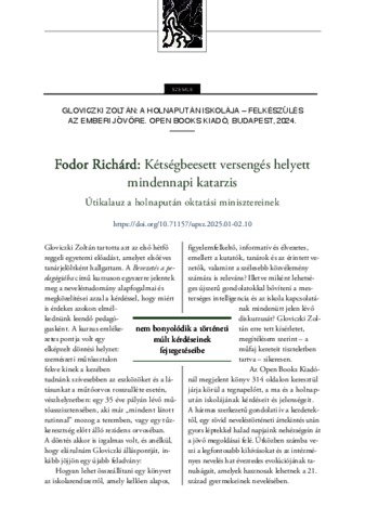 Fodor, Richárd (2025) Kétségbeesett versengés helyett mindennapi katarzis : Útikalauz a holnapután oktatási minisztereinek. ÚJ PEDAGÓGIAI SZEMLE, 75 (1-2). pp. 94-101. ISSN 1215-1807