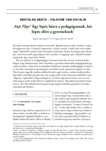 Bertalan, Beáta and Palkóné Tabi, Katalin (2025) Anji Play: Egy lépés hátra a pedagógusnak, két lépés előre a gyermeknek. ÚJ PEDAGÓGIAI SZEMLE, 75 (7-8). pp. 35-62. ISSN 1215-1807