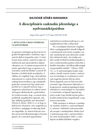 Bazsóné Sőrés, Marianna (2025) A diszciplináris szaktudás jelentősége a nyelvtanárképzésben. ÚJ PEDAGÓGIAI SZEMLE, 75 (9-10). pp. 91-100. ISSN 1215-1807