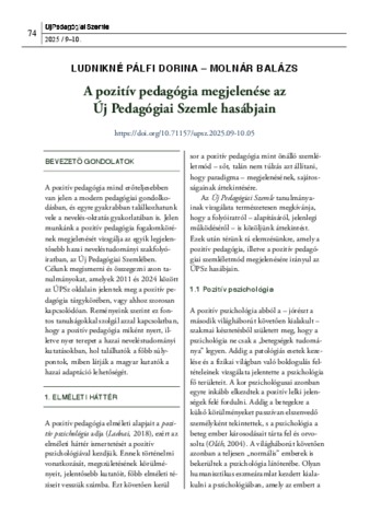Ludnikné Pálfi, Dorina and Molnár, Balázs (2025) A pozitív pedagógia megjelenése az Új Pedagógiai Szemle hasábjain. ÚJ PEDAGÓGIAI SZEMLE, 75 (9-10). pp. 74-90. ISSN 1215-1807