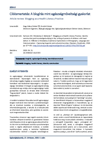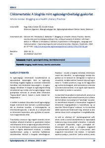 Uncontrolled Keywords: blogírás; egészségműveltség; identitáskonstrukció | blogging; health literacy; identity construction