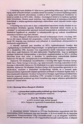 Additional Information: Type: MTA Agrártudományok Osztály Tájékoztatója 1996
