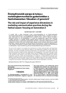 A kutatás célja a zenei fesztiválok online kommunikációjának és az élménymegosztás mechanizmusainak feltárása. Az élménygazdaság elméleti keretére építve a vizsgálat arra irányul, hogy miként jelennek meg a fesztiválélmények a digitális térben, valamint hogyan formálják a fogyasztói élményt és az elköteleződést. A kutatás két meghatározó magyar zenei fesztivált, a Sziget Fesztivált és a Szegedi Ifjúsági Napokat (ezentúl SZIN) veszi górcső alá. A vizsgálat meghatározó eleme a Z generáció kapcsolatának elemzése a fesztiválon megélt élményeik és az Instagramon történő online kommunikáció között. Vegyes kutatási módszert alkalmazva a vizsgált fesztiválok Instagram-posztjainak tartalomelemzését fókuszcsoportos interjúkkal egészítettük ki. A két módszer kombinálása a kutatási területen újszerű eredményekkel szolgált a két hazai fesztivál vonatkozásában, melyek elméleti és gyakorlati következtetéseket egyaránt hordoznak. | The aim of this research is to explore the mechanisms of online communication and experience sharing in the context of music festivals. Based on the theoretical framework of the experience economy, the study investigates how festival experiences are represented in the digital space and how these processes shape consumer experiences and engagement. The research focuses on two major Hungarian music festivals, the Sziget Festival and the Szegedi Youth Days (hereafter SZIN). A key element of the research is the analysis of Generation Z’s relationship between their festival experiences and their online self-representation on Instagram. A mixed-methods approach was applied, combining content analysis of the festivals’ Instagram posts with focus group interviews. The integration of these methods yielded novel insights into the digital communication of the two Hungarian music festivals, offering both theoretical and practical implications in this field.