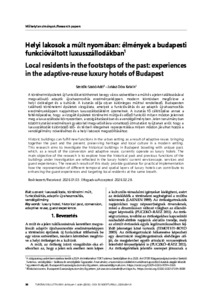 A történelmi épületek új funkciókat tölthetnek be egy város szövetében a múlt és a jelen találkozásával megvalósuló adaptív újrahasznosítás eredményeképpen, modern köntösben megőrizve a helyi örökséget és a kultúrát. A kutatás célja olyan különleges múlttal rendelkező, Budapesten található történelemi épületek vizsgálata, amelyek a funkcióváltás és az adaptív újrahasznosítás eredményeképpen napjainkban luxusszállodákként üzemelnek. A kutatás fő célkitűzése annak a feltérképezése, hogy a vizsgált épületek történelmi múltja és előző funkciói milyen módon jelennek meg a luxusszállodai környezetben, a szolgáltatásokban és a vendégélményben. Jelen tanulmányban közölt kutatási eredmények gyakorlati megvalósításra vonatkozó útmutatást nyújtanak arról, hogy a luxusszállodák különböző idő- és térbeli rétegeinek reprezentálása milyen módon járulhat hozzá a vendégélmény növeléséhez és a helyi lakosok megszólításához. | Historic buildings can fulfill new functions in the urban setting as a result of adaptive reuse, bringing together the past and the present, preserving heritage and local culture in a modern setting. This research aims to investigate the historical buildings in Budapest boasting with unique past, which, as a result of the conversion and adaptive reuse, currently operate as luxury hotels. The main objective of the research is to explore how the historical past and previous functions of the buildings under investigation are reflected in the luxury hotels’ current servicescape, services and guest experiences. The research results of this study provide guidance for practical implementation how the representation of different temporal and spatial layers of luxury hotels can contribute to enhancing the guest experiences and targeting local residents at the same breath.