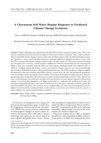 Farkas, Csilla and Hagyó, Andrea and Horváth, E and Várallyay, György (2008) A chernozem soil water regime response to predicted climate change scenarios. SOIL AND WATER RESEARCH, 3 (Specia). pp. 558-567. ISSN 1801-5395