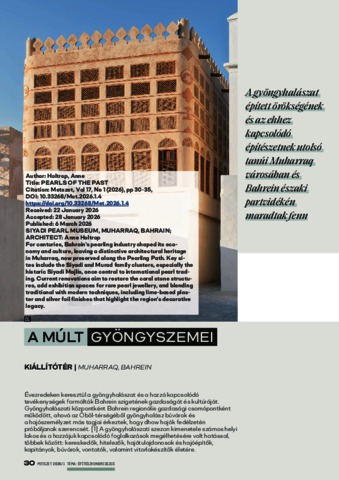 Holtrop, Anne (2026) A múlt gyöngyszemei = Pearls of the past. METSZET, 17 (1). pp. 30-35. ISSN 2061-2710