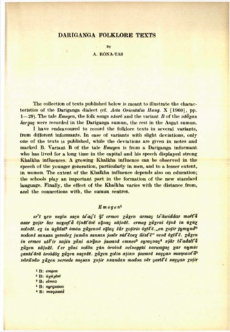Róna-Tas, András (1960) Dariganga Folkolore Texts. ACTA ORIENTALIA ACADEMIAE SCIENTIARUM HUNGARICAE, 10 (1). pp. 171-183. ISSN 0001-6446