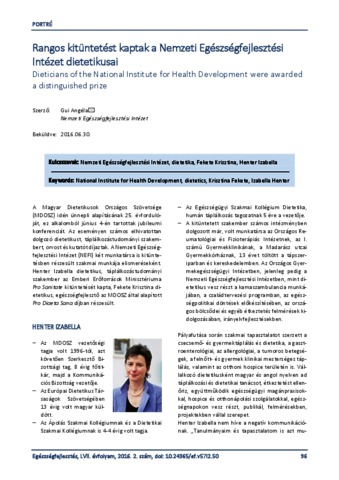 Gui, Angéla (2016) Rangos kitüntetést kaptak a Nemzeti Egészségfejlesztési Intézet dietetikusai = Dieticians of the National Institute for Health Development were awarded a distinguished prize. EGÉSZSÉGFEJLESZTÉS, 57 (2). pp. 96-97. ISSN 1786-2434 (nyomtatott); 2498-6666 (elektronikus)