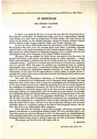 Róna-Tas, András (1975) In memoriam Sir Gerald Clauson (1891–1974). ACTA ORIENTALIA ACADEMIAE SCIENTIARUM HUNGARICAE, 29. ISSN 0001-6446