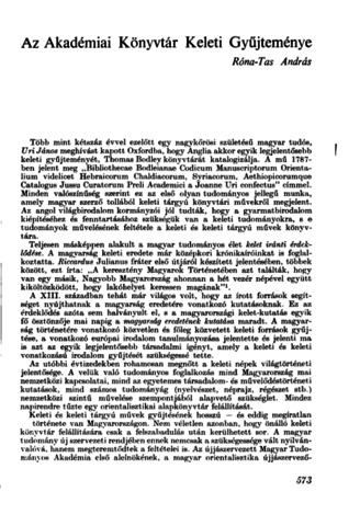 Róna-Tas, András (1976) Az Akadémiai Könyvtár Keleti Gyűjteménye. MAGYAR TUDOMÁNY, 9. pp. 573-577. ISSN 0025-0325
