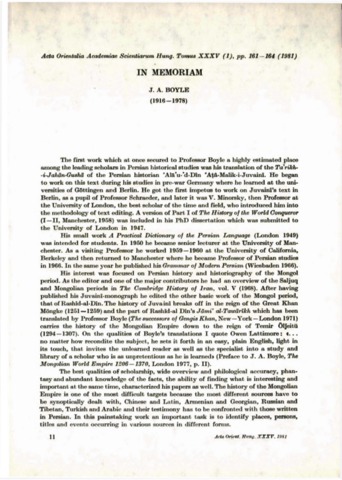 Róna-Tas, András (1981) In memoriam J. A. Boyle (1916–1978). ACTA ORIENTALIA ACADEMIAE SCIENTIARUM HUNGARICAE, 35. pp. 161-163. ISSN 0001-6446