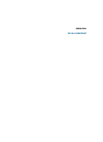 Gálhidy, Péter (2022) Hol van a szobor helye? Műhelytanulmányok, 4 (7). Magyar Művészeti Akadémia Művészetelméleti és Módszertani Kutatóintézet, Budapest. ISBN 9786156434227