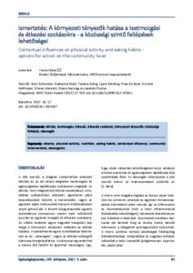 | Uncontrolled Keywords: | elhízás; testmozgás; étkezés; étkezési szokások; környezeti tényezők; közösségi fellépés; obezogén | obesity;physical activity; nutrition; eating habits; contextual influence; community interventions; obesogenic |