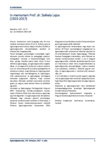 In memoriam Prof. dr. Székely Lajos (1923-2017)