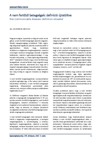Vitrai, József (2017) A nem fertőző betegségek: definíció újratöltve = Non-communicable diseases: definition reloaded. EGÉSZSÉGFEJLESZTÉS, 58 (4). pp. 1-3. ISSN 1786-2434 (nyomtatott); 2498-6666 (elektronikus)