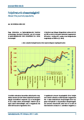 Vitrai, József (2017) Folyóiratunk olvasottságáról = About the journal popularity. EGÉSZSÉGFEJLESZTÉS, 58 (4). pp. 4-5. ISSN 1786-2434 (nyomtatott); 2498-6666 (elektronikus)