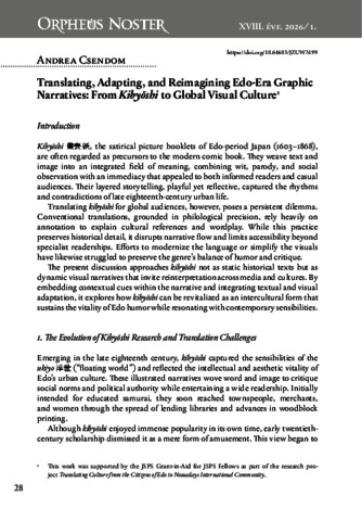 Csendom, Andrea (2026) Translating, Adapting, and Reimagining Edo-Era Graphic Narratives : From Kibyōshi to Global Visual Culture. ORPHEUS NOSTER, 18 (1). pp. 28-42. ISSN 2061-456X
