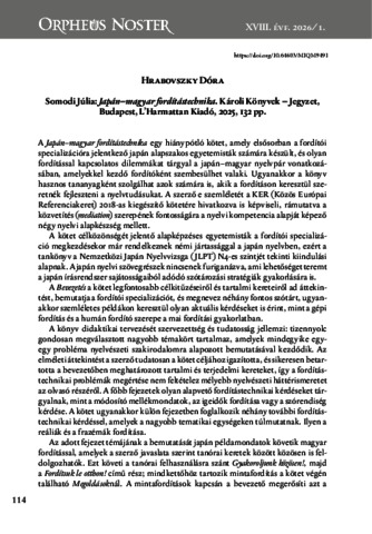 Hrabovszky, Dóra (2026) Somodi Júlia: Japán–magyar fordítástechnika. Károli Könyvek – Jegyzet, Budapest, L’Harmattan Kiadó, 2025. ORPHEUS NOSTER, 18 (1). pp. 114-115. ISSN 2061-456X