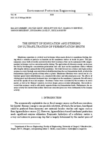 Lemmer, Balázs and Jákói, Zoltán Péter and Szpisják-Gulyás, Nikolett and Kertész, Szabolcs and Beszédes, Sándor and László, Zsuzsanna and Hodúr, Cecilia (2020) The effect of sonication and stirring on ultrafiltration of fermentation broth. ENVIRONMENT PROTECTION ENGINEERING, 46 (1). pp. 49-62. ISSN 0324-8828