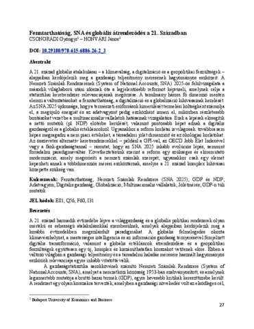 Csongrádi, Gyöngyi and Honvári, János (2026) Fenntarthatóság, SNA és globális átrendeződés a 21. Században. In: Changing World, Changing Economy. Budapesti Gazdaságtudományi Egyetem, Budapest, pp. 27-35. ISBN 9786156886262