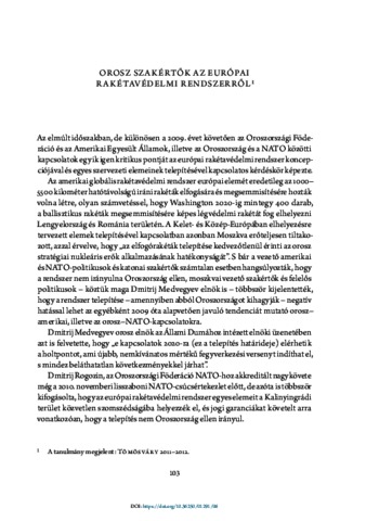 Tömösváry, Zsigmond (2025) Orosz szakértők az európai rakétavédelmi rendszerről. In: Globális vagy regionális hatalom Oroszország? Ludovika Egyetemi Kiadó, Budapest, pp. 103-117. ISBN 9789636532055
