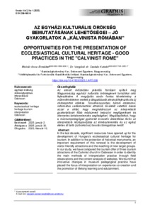 Molnár, Annna Erzsébet and Vargáné Csobán, Katalin (2025) Az egyházi kulturális örökség bemutatásának lehetőségei : jó gyakorlatok a „kálvinista Rómában”. GRADUS, 12 (1). ISSN 2064-8014