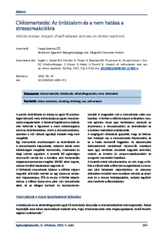 Varga, Szabolcs (2019) Cikkismertetés: Az önbizalom és a nem hatása a stresszreakciókra = Article review: Impact of self-esteem and sex on stress reactions. EGÉSZSÉGFEJLESZTÉS, 60 (5). pp. 154-155. ISSN 1786-2434 (nyomtatott); 2498-6666 (elektronikus)