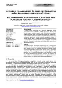 Kocsis, Zoltán Tamás (2025) Optimális csavarméret és elhelyezési pozíció ajánlása gerincsebészeti műtéthez. GRADUS, 12 (1). ISSN 2064-8014