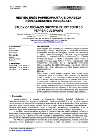 Tóthné Taskovics, Zsuzsanna and Osztényiné Krauczi, Éva and Váradi, Gyula and Kovács, András (2025) Hegyes erős paprikafajták biomassza növekedésének vizsgálata = Study of biomass growth in hot pointed pepper cultivars. GRADUS, 12 (1). ISSN 2064-8014
