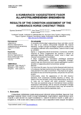 Gyenes, Dominika and Kiss, Tímea and Koltay, András and Ecseri, Károly (2025) A kunbaracsi vadgesztenye fasor állapotfelmérésének eredményei = Results of the condition assessment of the Kunbaracs horse chestnut trees. GRADUS, 12 (1). ISSN 2064-8014