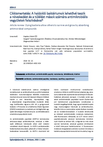 Gajdács, Márió (2019) Cikkismertetés: A haldokló baktériumok lehetővé teszik a növekedést és a túlélést mások számára antimikrobiális vegyületek felszívásával = Article review: Dying bacteria allow others to survive and grow by absorbing antimicrobial compounds. EGÉSZSÉGFEJLESZTÉS, 60 (2). pp. 87-88. ISSN 1786-2434 (nyomtatott); 2498-6666 (elektronikus)