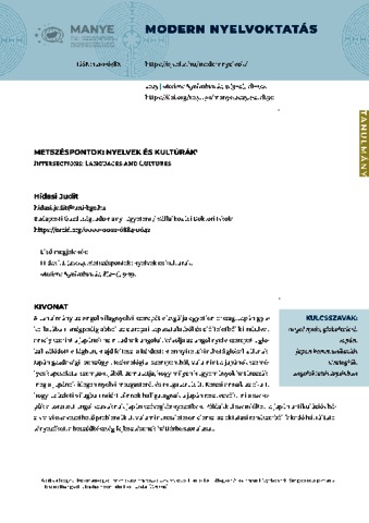Hidasi, Judit (2025) Metszéspontok: nyelvek és kultúrák. MODERN NYELVOKTATÁS, 31 (3–4). pp. 78-90. ISSN 1219-638X
