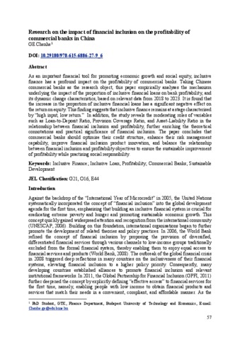 Ge, Chence (2026) Research on the impact of financial inclusion on the profitability of commercial banks in China. In: ESG - RISK MANAGEMENT OR NEW SUSTAINABILITY? Budapesti Gazdaságtudományi Egyetem (BGE), Budapest, pp. 57-69. ISBN 9786156886279