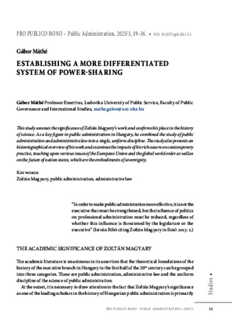 Máthé, Gábor (2025) Establishing a More Differentiated System of Power-Sharing. PRO PUBLICO BONO: MAGYAR KÖZIGAZGATÁS; A NEMZETI KÖZSZOLGÁLATI EGYETEM KÖZIGAZGATÁS-TUDOMÁNYI SZAKMAI FOLYÓIRATA, 13 (3). pp. 19-36. ISSN 2063-9058